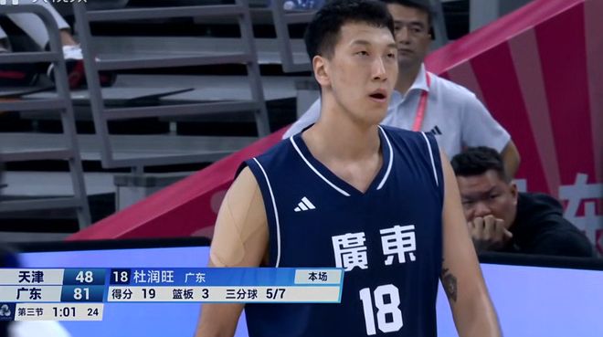 杜潤旺的三分成功收獲杜鋒信任,接下來阿旺繼續留在場上單節打滿,比分落後20+,天津開始搏命三分,鄭昊燃時德帥連中2記三分,關鍵時刻杜潤旺左翼三分再中還以顏色,這一節廣東隊三分完全投開,杜潤旺成為這一節的場上最靚的仔,單節貢獻5記三分轟下17分,是這一節廣東隊外線最靠譜的點。