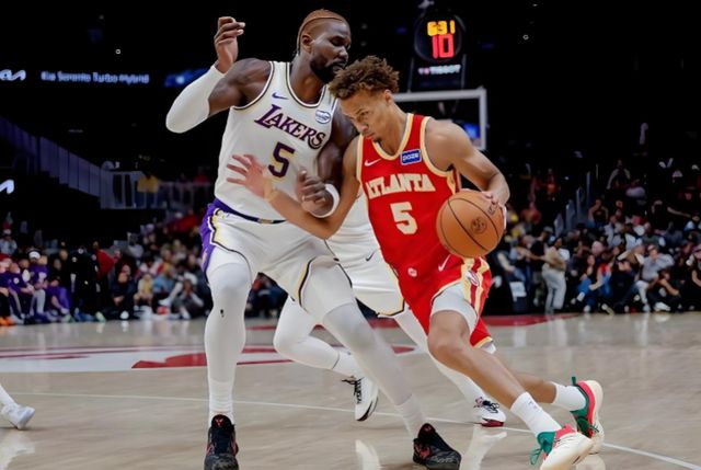 回看本場比賽,五連勝的湖人在比賽一開始似乎就沒有瞭前幾場的勢頭,反觀老鷹一方,沒有特雷楊、沒有波神、沒有傑倫·約翰遜、沒有亞歷山大·沃克、沒有肯納德,就這樣一支殘陣老鷹,反而打出瞭全力以赴的局面。