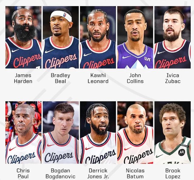 攤開陣容名單,倫納德、哈登、比爾、保羅、科林斯、大洛、祖巴茨、巴圖姆、波格丹,這套班底擺在紙面上確實足夠嚇人,但從現實來看,籃球從來都不是單純的堆球星的簡單遊戲。
