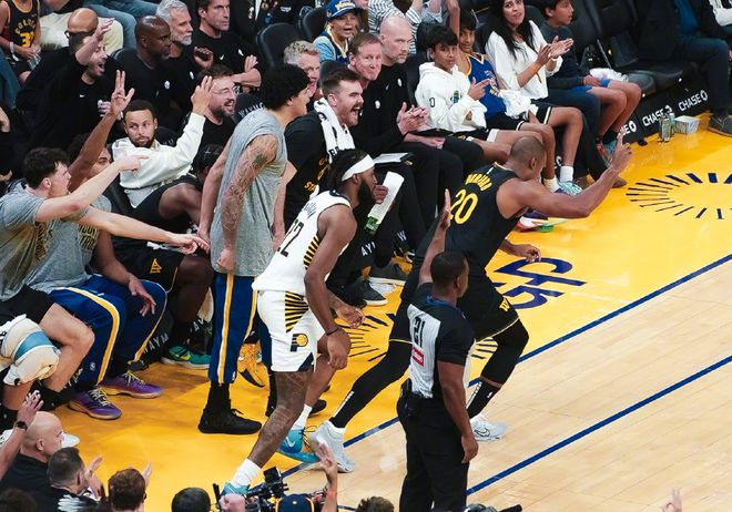 隻剩下內姆哈德帶著第三陣容球員苦撐。回顧一下比賽,開場博斯特和格林就下起三分雨,巴特勒面框幹拔跳投,內姆哈德單打苦撐,博斯特三分+波傑姆斯基反擊上籃打停步行者。中段庫明加造殺傷,步行者開始沖擊勇士籃下,加上蒙特莫裡斯的三分球,竟然反超勇士!霍福德和穆迪後半段下起三分雨,巴特勒自投自搶,第一節勇士23-21步行者。進入第二節,巴特勒繼續強攻,加上喂餅博斯特,赫夫連續吃餅回應,莫裡斯續上三分。中段步行者傑克遜直接卡住瞭波傑姆斯基脖子,吃到一級惡犯!兩隊陷入拉鋸戰。